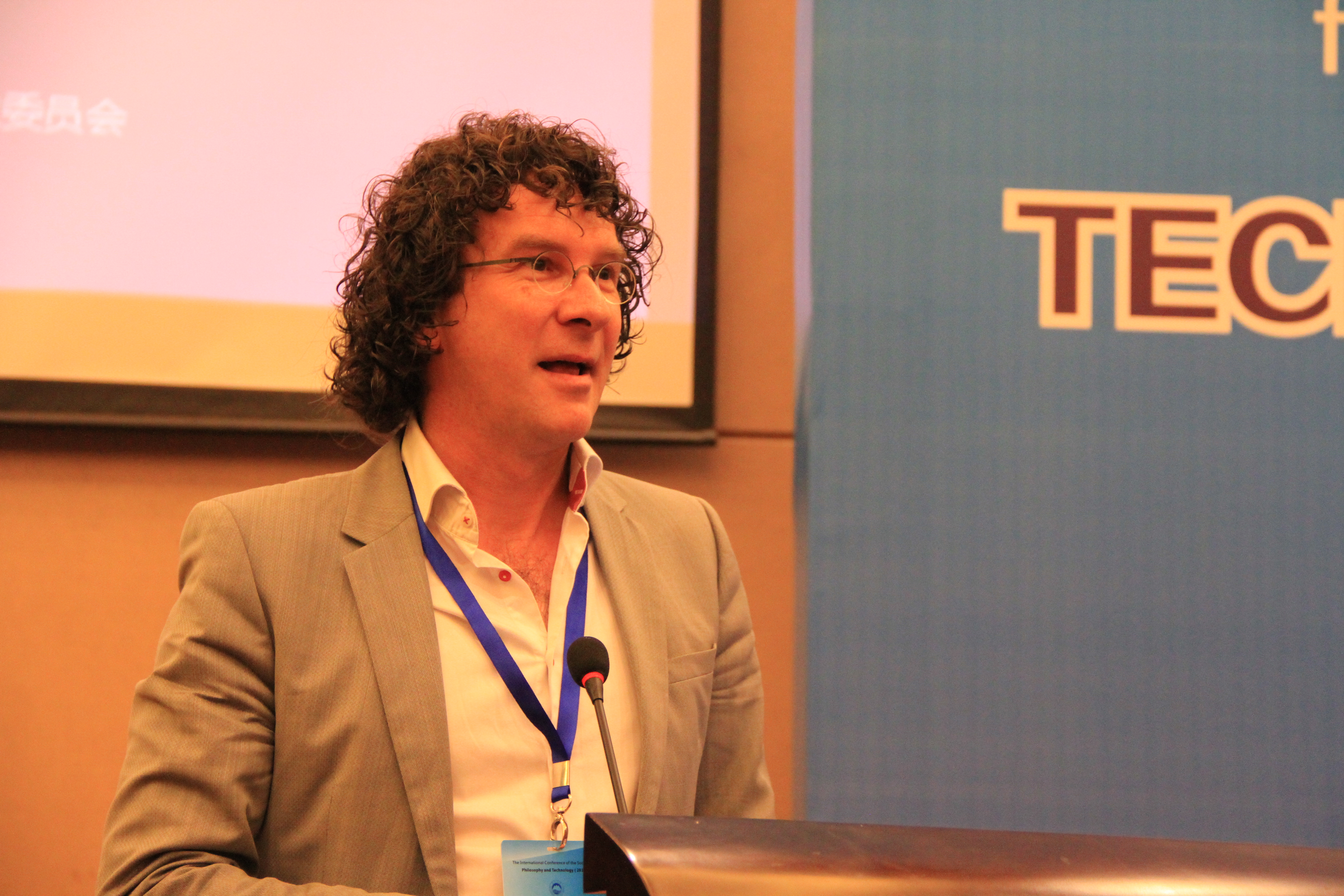 Peter-Paul VERBEEK教授报告的题目是《从技术出发的哲学思考:从认识论、伦理和形而上学的角度思考》。Peter-Paul VERBEEK教授认为技术在自然科学与人文社会学科这“两种文化”长期的对立后,现在技术已经可以归为一种成熟的人文社会学的研究。相较于哲学与伦理学的理论应用于技术领域的传统办法。Peter-Paul VERBEEK教授认为现实的技术领域的发展变迁更应成为哲学分析的起点,技术实际上促使我们重新审视哲学本身。技术的道路是在人类与现实中间走出的,技术的本质在于在这之间进行调解。技术之所以能承担这样的调解者的角色,是因为技术规范了人类的行动,影响了人类的行动,塑造了人类对世界的理解。