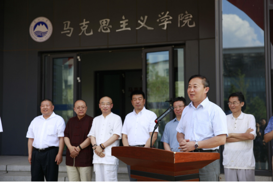 田鹏颖首先介绍了出席揭牌仪式的各位领导嘉宾并向出席揭牌仪式的嘉宾们介绍了此次揭牌仪式的背景。之后,校长赵继和上海绿谷集团董事长吕松涛校友共同为“陈昌曙楼”揭牌。