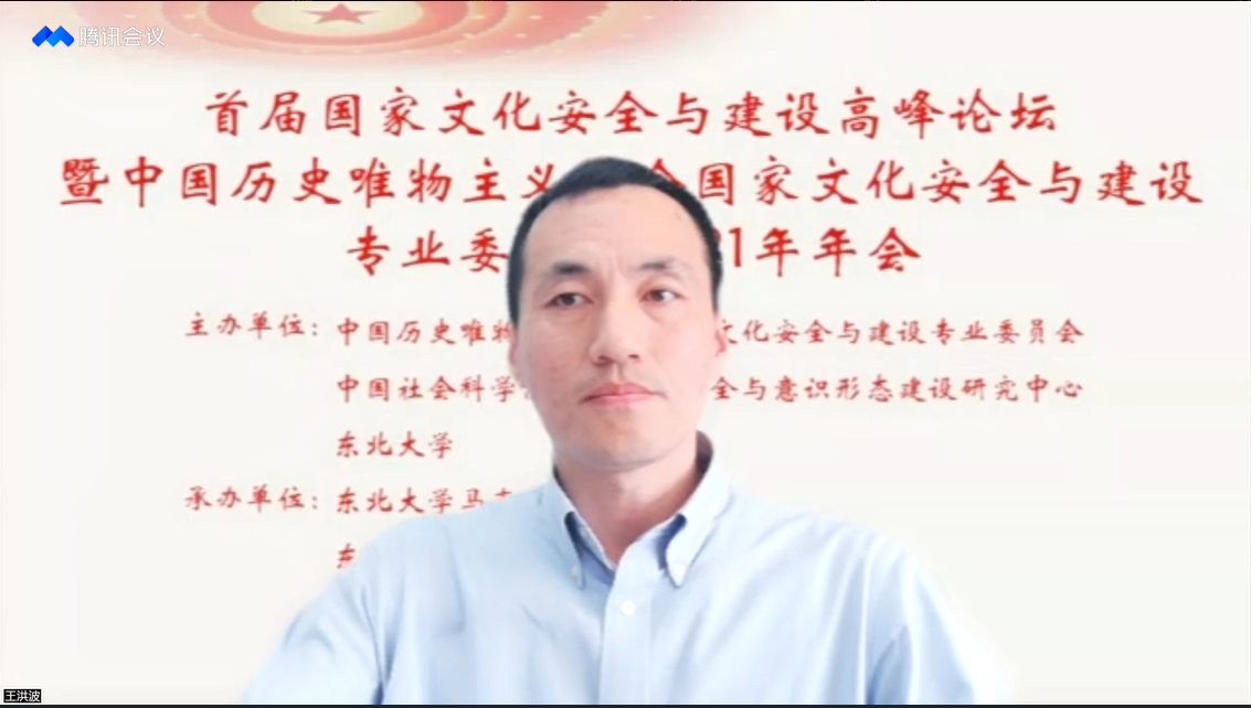 东北大学党委副书记张国臣教授首先致辞。他代表学校对大会的成功召开表示热烈祝贺,对众多学者的辛勤付出表示诚挚谢意,对出席会议的各位嘉宾表示衷心感谢。他指出,文化是国家和民族生存与发展的重要力量,实现中国梦需要物质文明和精神文明的均衡发展与相互促进。文化安全作为总体国家安全观的重要内容之一,是国家安全体系的重要部分,必须增强忧患意识,始终居安思危,贯彻总体国家安全观。他强调,东北大学将始终与国家民族命运紧密相连、与时代发展同向同行,在深入学习贯彻党的十九届六中全会精神的基础上,从党和国家发展大局的高度深刻认识维护国家文化安全的重大意义,并以马克思主义为指导,积极为党和人民述学立论、建言献策,以“自强不息、知行合一”的文化基因,不断为新时代中国特色社会主义建设注入新的力量。