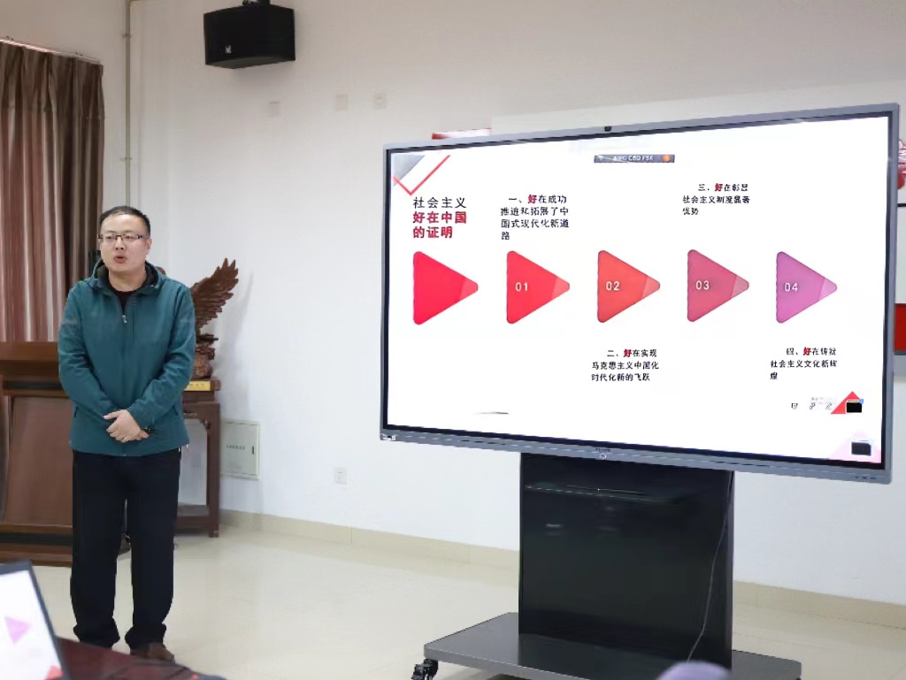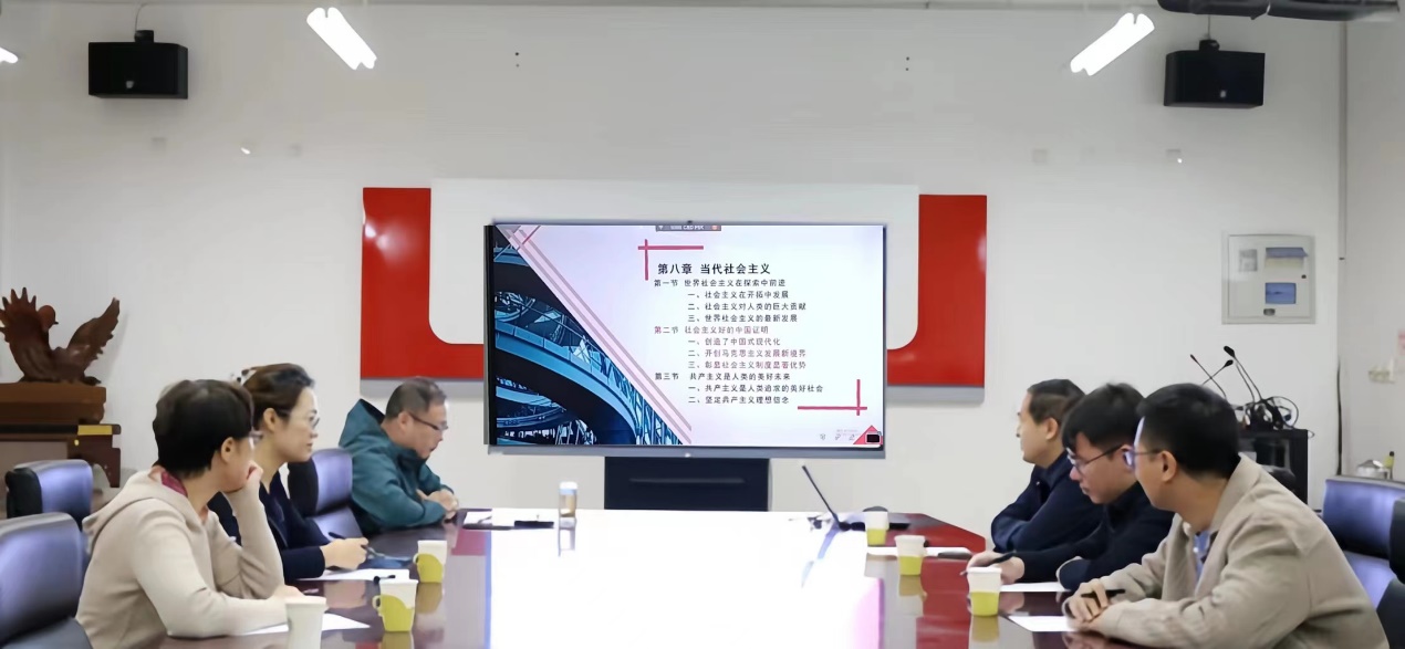 在磨课会上,学院参赛教师段炼副教授介绍了当前准备情况和比赛进展,并以“社会主义好的中国证明”为主题进行了现场说课。