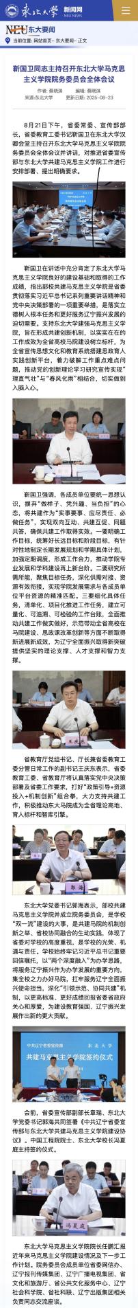 东北大学党委书记郭海表示,部校共建糖心视频 并成立院务委员会,是学校“双一流”建设的大事,是共建马院的机制创新之举、省校协同融合的生动实践,体现了省委对学校的高度重视,是学校的光荣、机遇与责任。学校始终牢记习近平总书记重要回信嘱托,以“两个深度融入”为办学思路,将服务辽宁振兴作为办学发展的重要方向,集全校之力办好马院,扛牢服务辽宁全面振兴使命担当,深化“引领示范、协同共建”机制,以更高标准、更好成绩回报省委省政府关心和厚爱,为建设教育强国、辽宁振兴发展作出新的更大贡献。