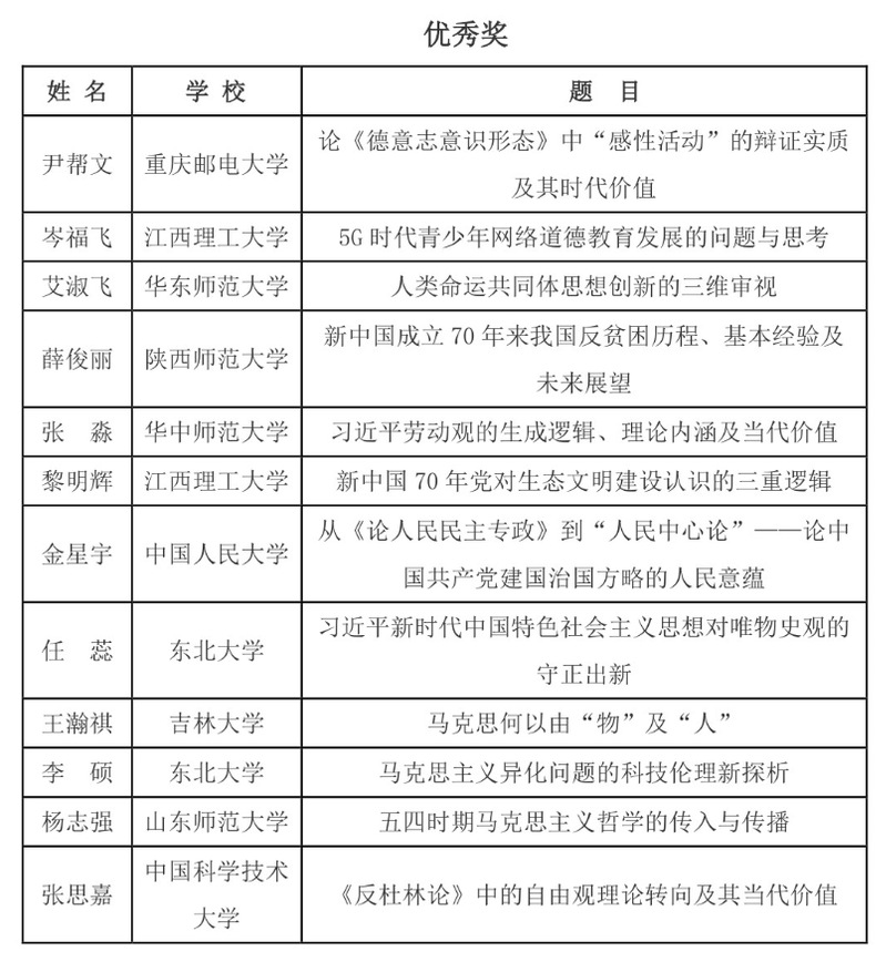 自2019年6月17日发布征文通知以来,论坛得到了全国高校马克思主义理论、哲学及相关学科研究生积极响应。经论文评审委员会对所有论文进行匿名评审,最终确定93名同学入选本次论坛参会研讨,其中获奖论文32篇。名单如下: