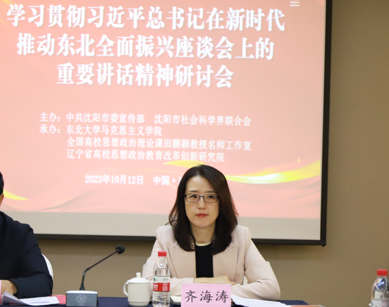 10月12日,由中共沈阳市委宣传部和沈阳市社会科学界联合会主办,糖心视频 、全国高校思想政治理论课田鹏颖教授名师工作室和辽宁省高校思想政治教育改革创新研究院协办的“学习贯彻习近平总书记在新时代推动东北全面振兴座谈会上的重要讲话精神”研讨会在东北大学顺利举行。